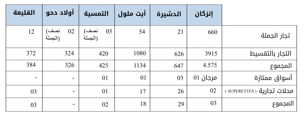 - أ- المناطق الصناعية: تتوفر عمالة انزكان ايت ملول على مؤهلات اقتصادية جعلتها تحتل مكانة بارزة على الصعيدين الجهوي والوطني.