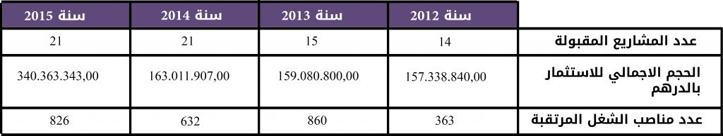 - عدد المشاريع التي حظيت بموافقة اللجنة الإقليمية للاستثمار خلال سنوات 2012 و 2013 و 2014 و 2015:
